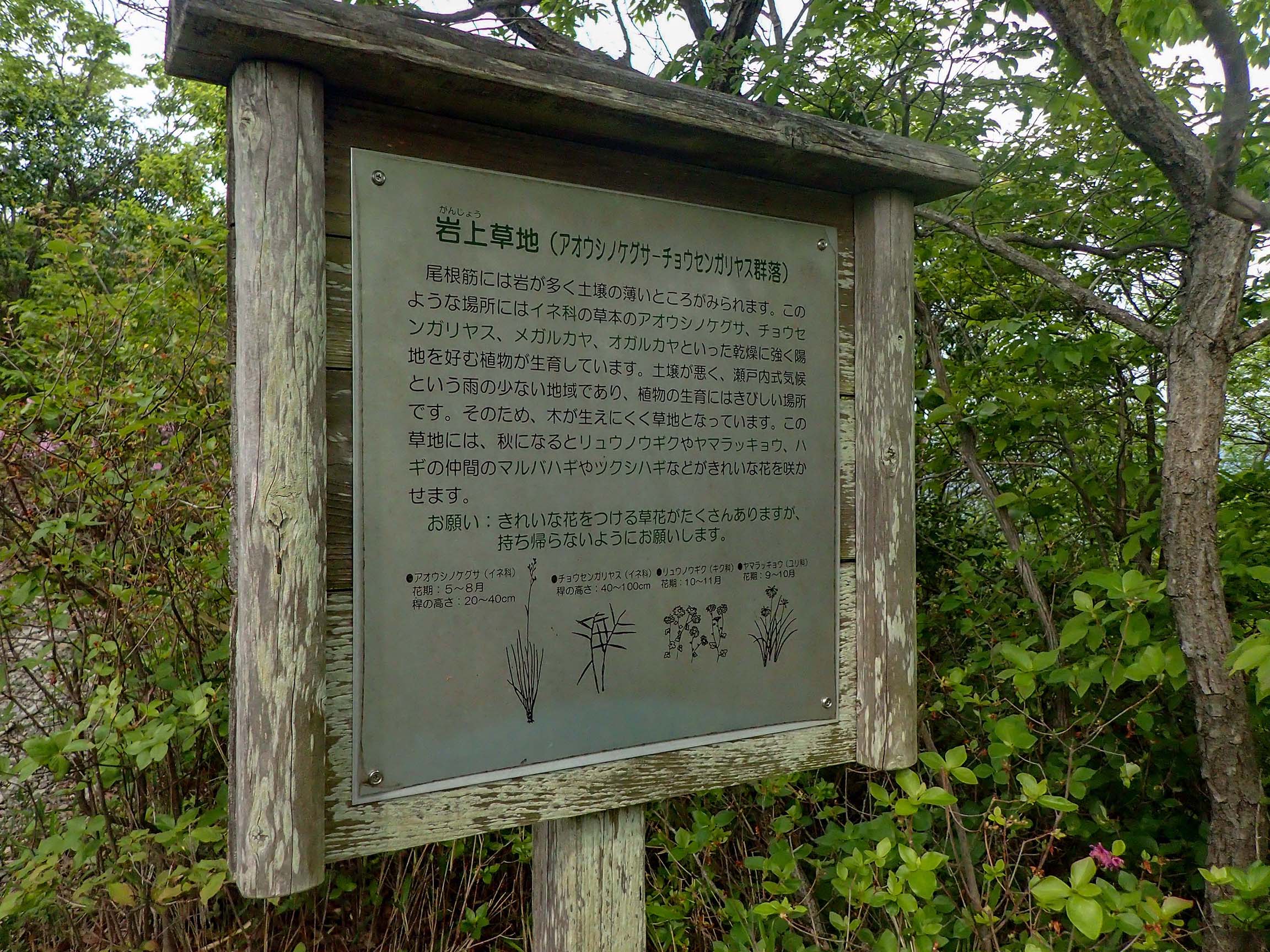 植生についての案内看板。こういうのあんっまり詳しくないのですが、あるとそれなりに興味出ますよね。ただ登りの途中で息があがっていると余裕がないので、とりあえず写真だけ撮ってあとから見返すことがもっぱらですが(苦笑)